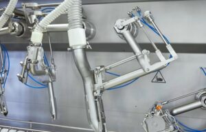 Centering device, belly knife, sucking tool, scraping tools A, B and C – a TPM+ dynamic, and in some cases two, in size 025 is installed in each processing module. The eleventh servo actuator is the main drive. It moves the chain that pulls the salmon through the machine. The platen on which these drives are mounted separates the actuators and the wiring from the machine’s process side by means of an absolutely tight shaft gland. The TPM+ are provided with a stainless steel output as well as a special three-component paint for protection against corrosion.